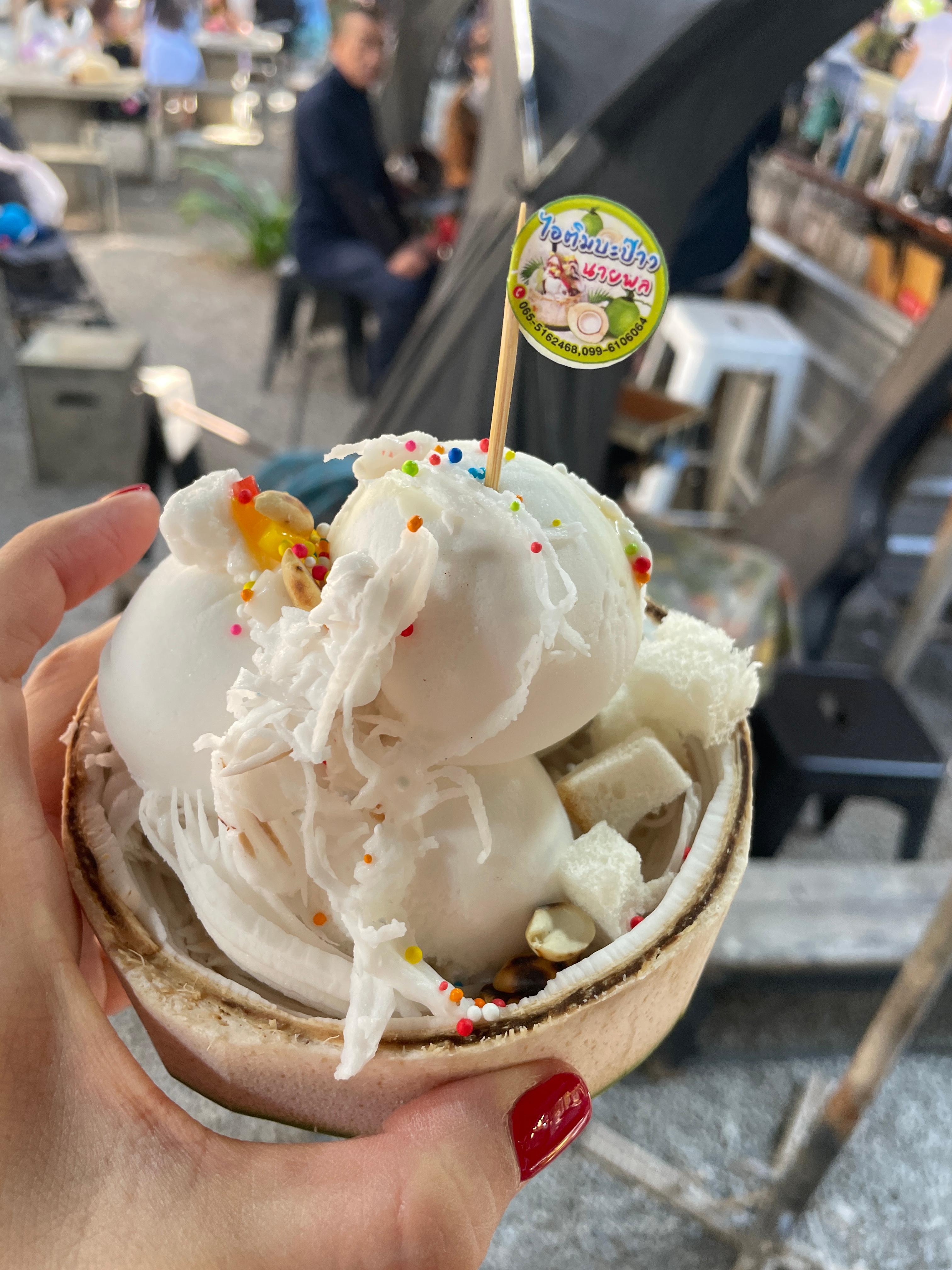 코코넛마켓에서 꼭 먹어야할것은 코코넛아이스크림과 무삥(꼬치구이)이예요 (제기준입니다)