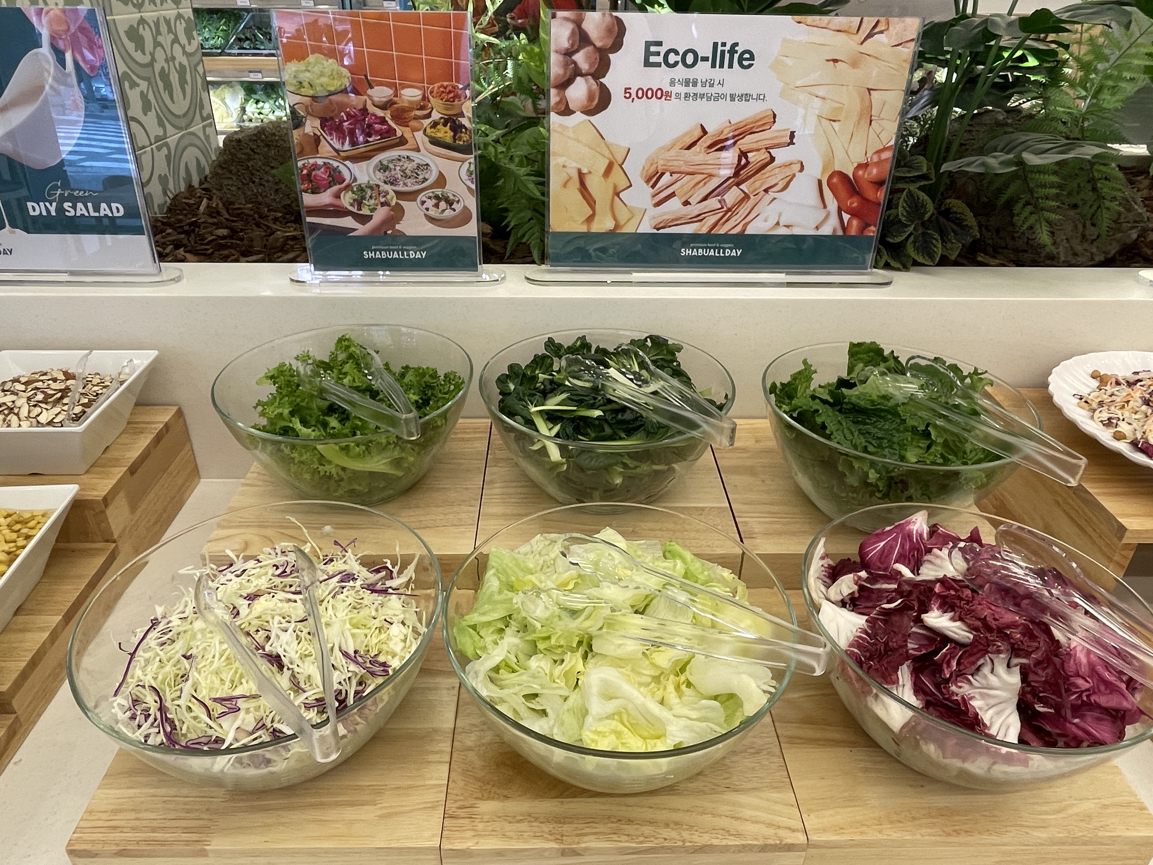 자리를 잡은 후 샐러드뷔페가 무료니깐 어떤 메뉴가 있는지 봐야겠습니다