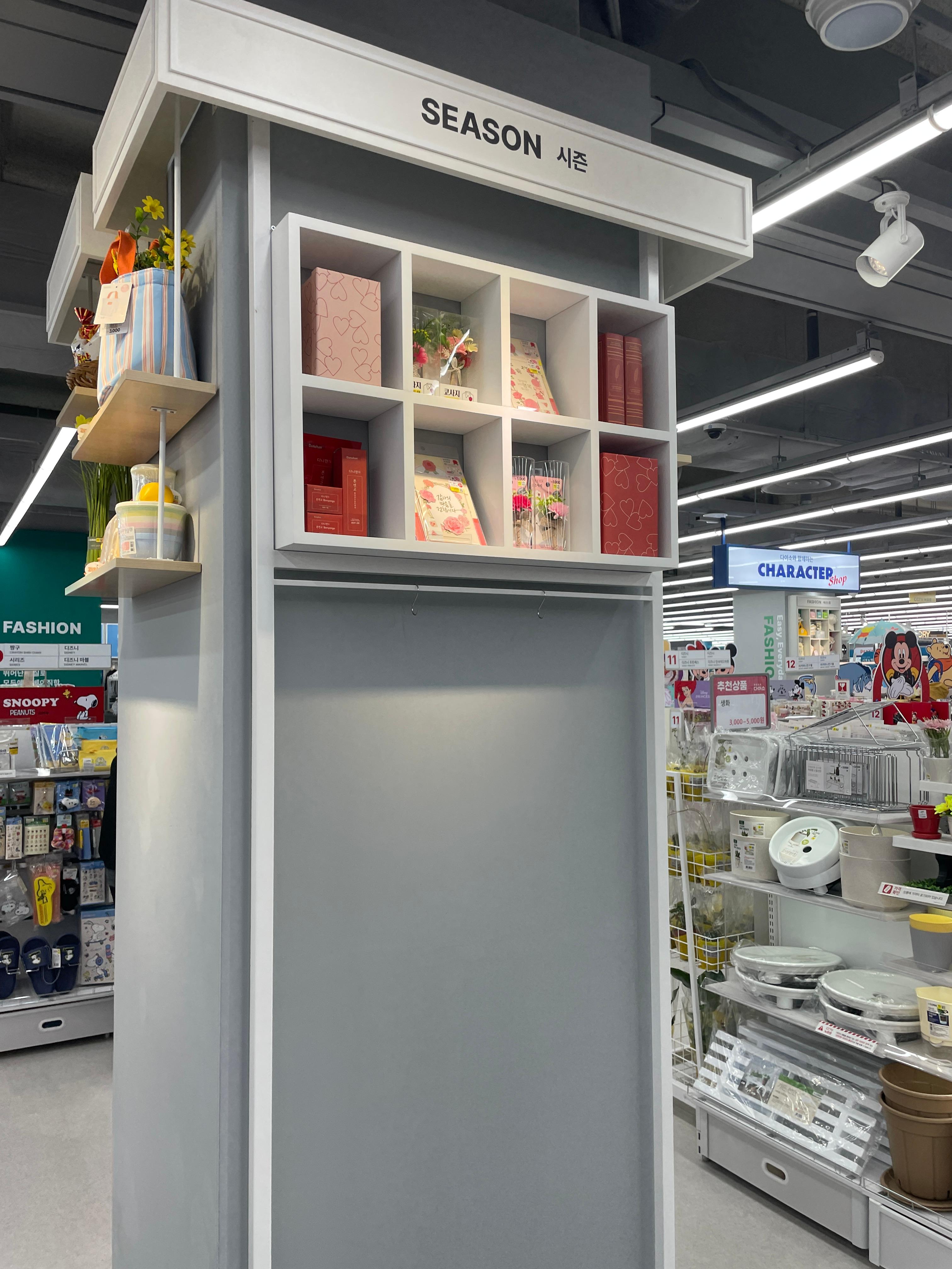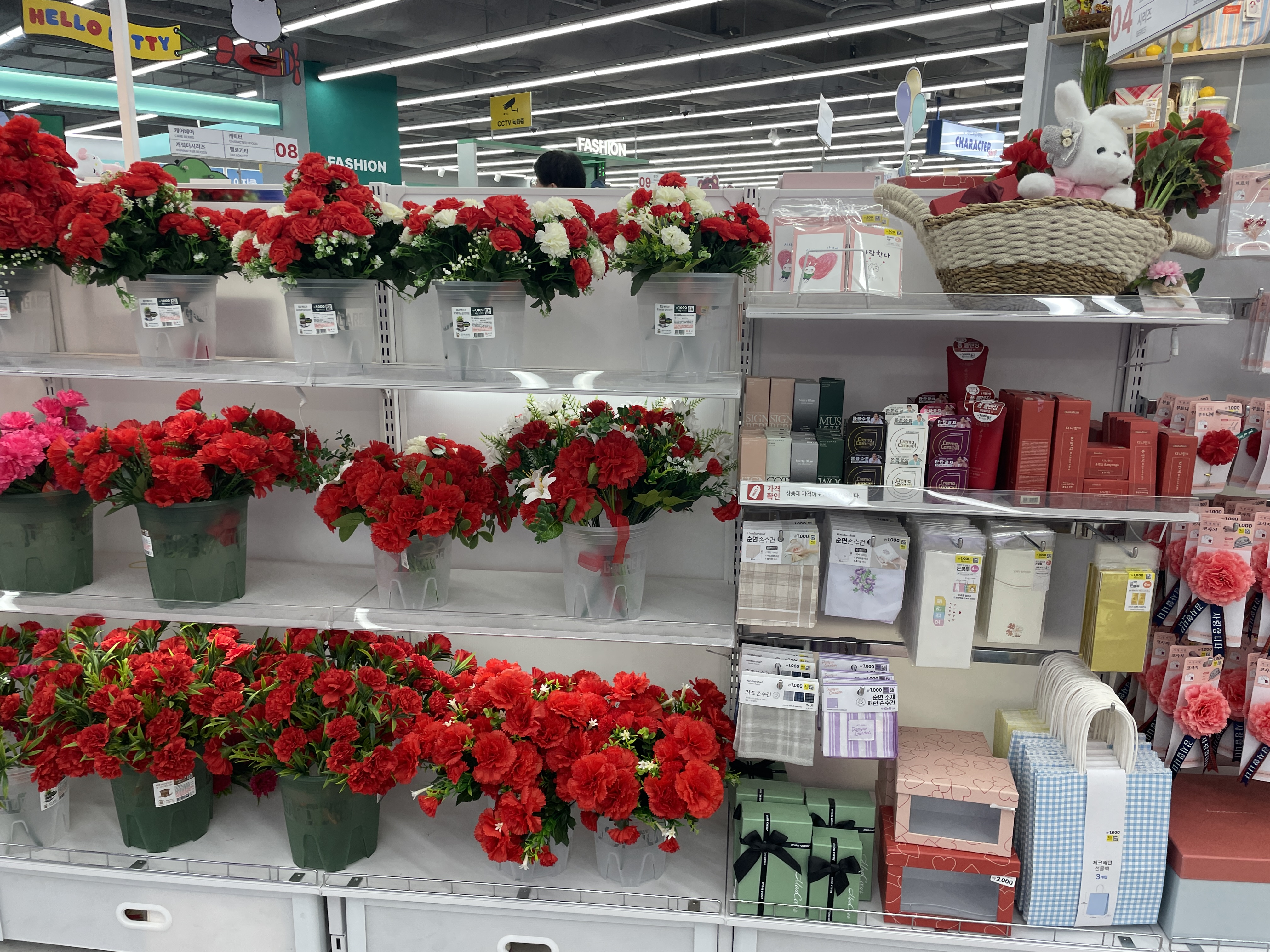 다이소 이스턴스퀘어점의 특이한점은 시즌코너에요 가정의달이라서 5월엔 카네이션 이런것이 진열되어있고 여름은 휴가시즌이니깐 머 그런것 겨울엔 크리스마스 이런식으로 시즌코너에 진열되느듯 싶어요. 아주 아이디어 좋습니다