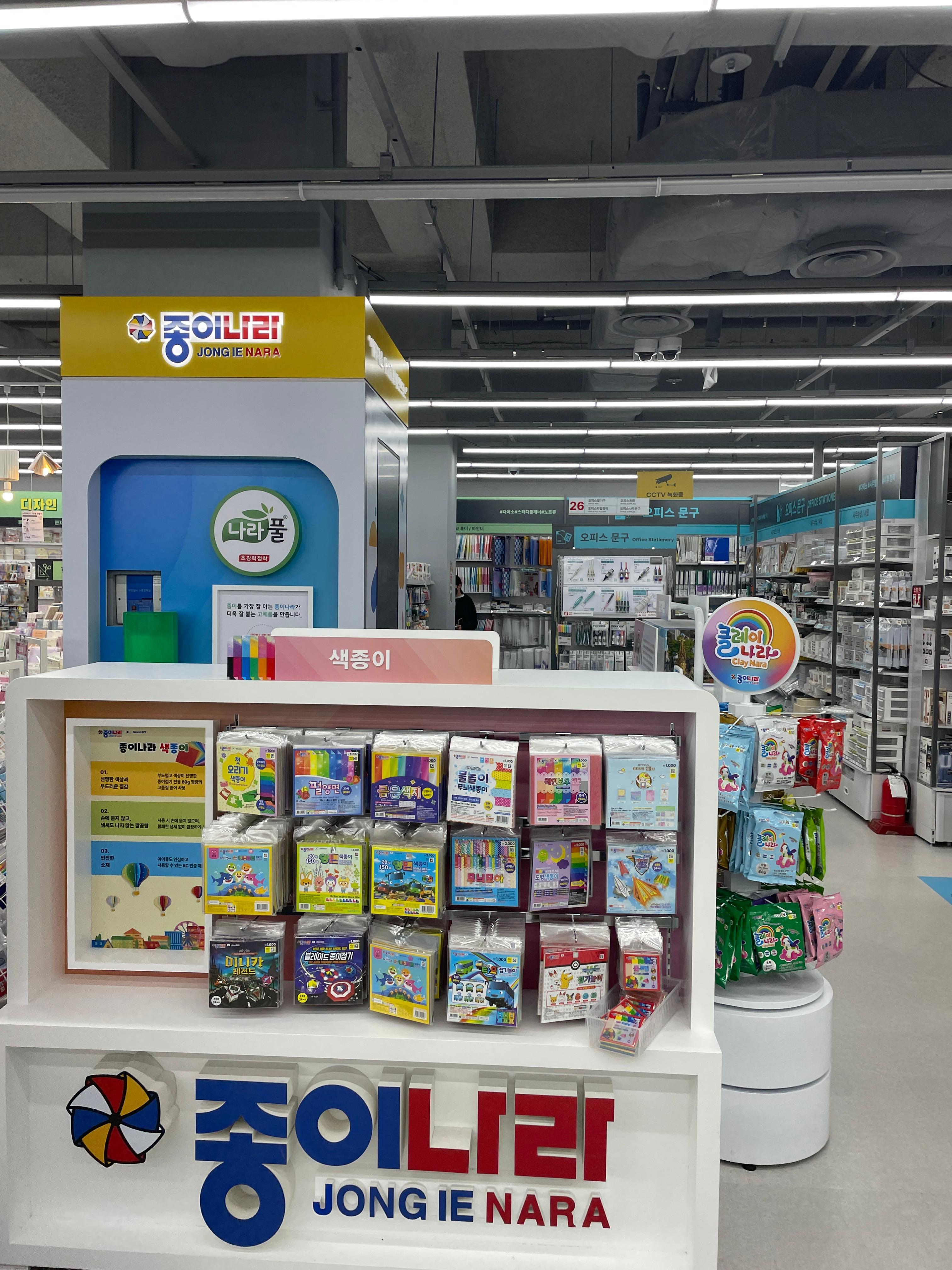 종이나라 섹션에 다양한 색종이가 구비되어있습니다. 종이접기 좋아하는 아이들을 위한곳