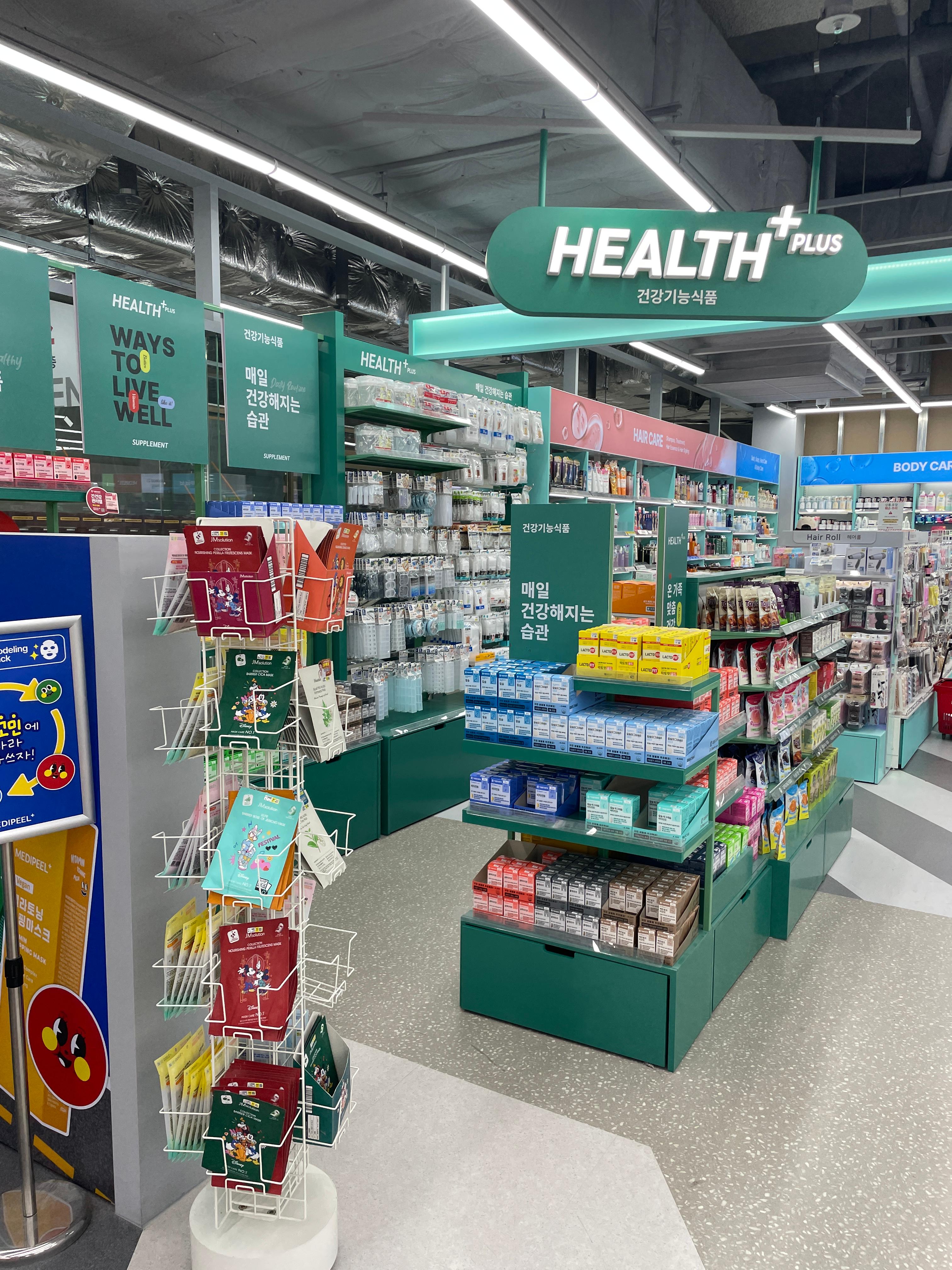 백화점 샵들처럼 아주 귀엽고 깜찍한 컨셉으로 꾸며놓은 화장품코너예요 옆에 이어서 헬스코너에 영양제등이 판매되고있답니다