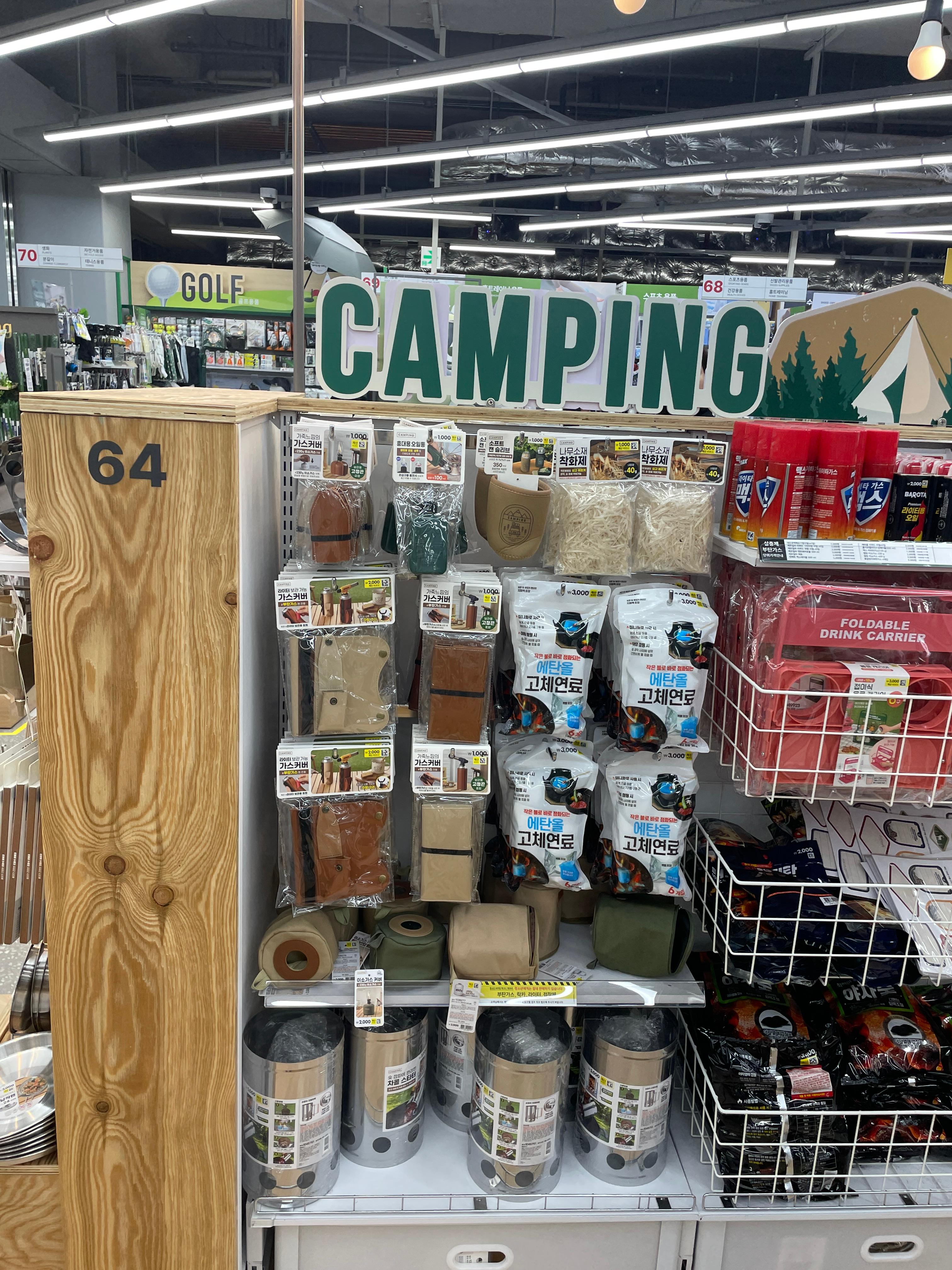 다른데는 여행코너에 조금 들어가있는데 이렇게 캠핑존이 따로있어서 캠핑족들에게 가성비좋은 제품들이 판매하고 있으니 한번 둘러보시면 좋을꺼예요