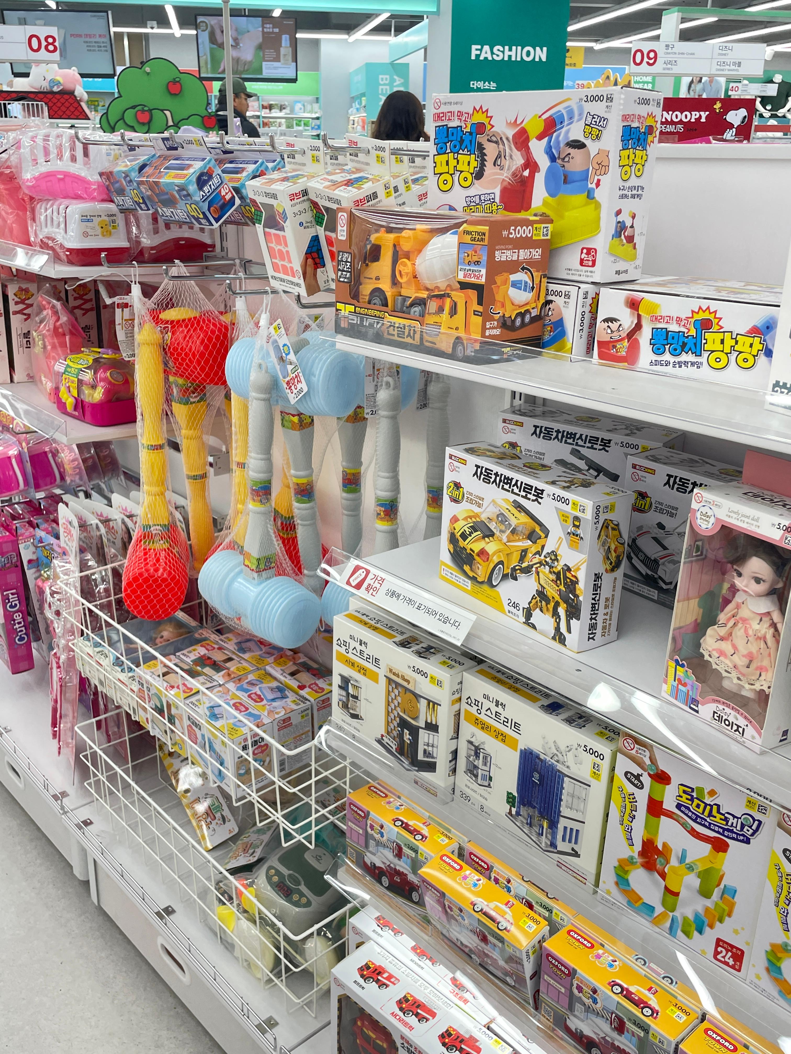 이제 아이들이 제일 좋아하는 캐릭터 완구류 코너로 이동