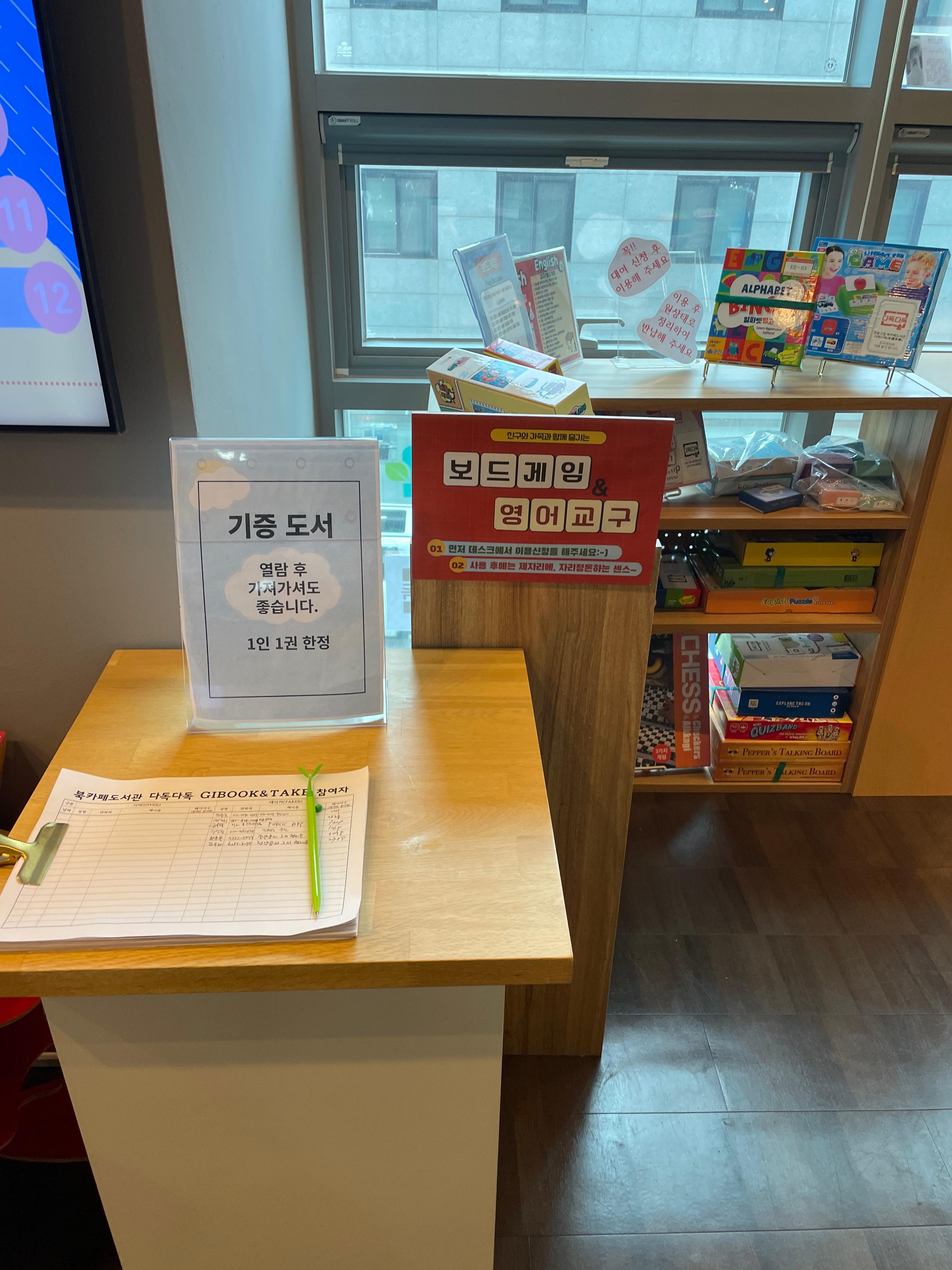 보드게임도 있구요 기증도서는 가져갈 수 있습니다